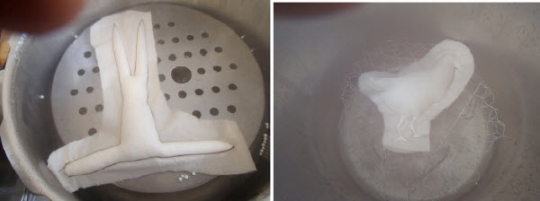 Durch Dampf und Hitze „schwillt“ das Objekt an. Ca. 5 Minuten.